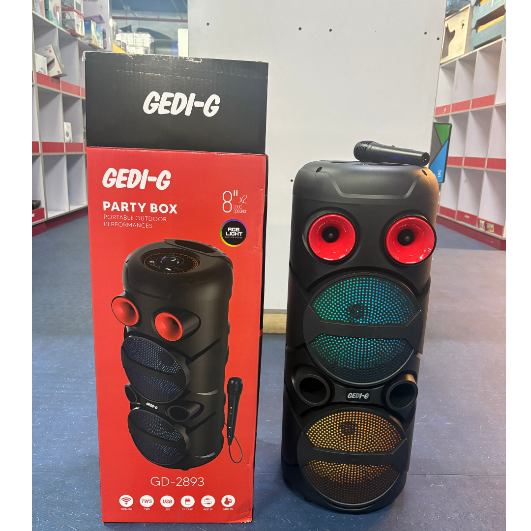 Imagina tener el control total del ambiente. Con su diseño de torre imponente y sus luces LED RGB frontales, el GD-2893 no solo se escucha, también se siente. Sus dobles bocinas de 8 pulgadas llenan cualquier espacio, desde tu sala hasta un patio amplio, con un sonido envolvente y bajos profundos que marcan el ritmo de la noche.